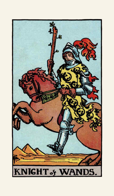 When the Knight of Wands card appears in a reading, it's a good sign. It means you're making progress, usually faster than expected, and can succeed if you keep up your energy and enthusiasm. This card is about action and movement, so don't delay - start working toward your goals. The Knight of Wands as a person is charming and charismatic, but can be quick-tempered and insensitive, especially when feeling restricted. So, try to stay on their good side.